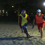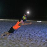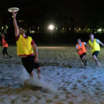 The LA Throwback Foundation has purchased LED lights for a nighttime pickup beach ultimate we set up each week (weather permitting). The game takes place on Wednesday evenings on the beach at the end of Rose Ave. We set out one or two lined fields (depending on #’s) along with the lights, and supply reversible brightly colored pinnies that are easy to see at night. The game starts sometime between 7:30 and 8 pm. There is no charge for the lights or the use of the pinnies, but we do ask that people register here and sign the waiver. Facilitating this new game for our community aligns with our mission, is fun, and happens after traffic, so please join us! If there’s interest, we’re willing to add other days. Follow venice_night_beach_ultimate on Instagram for timely updates.